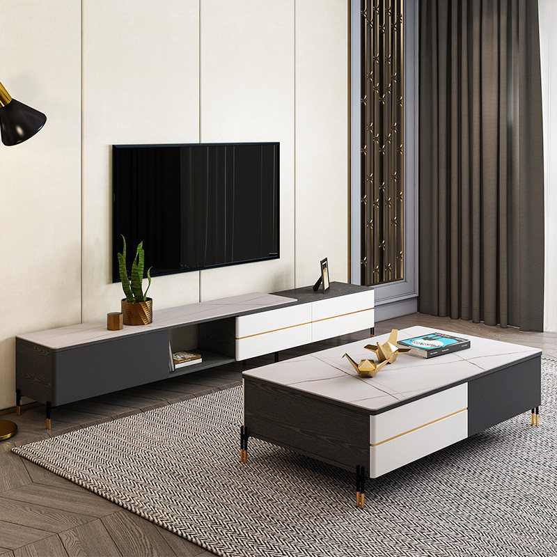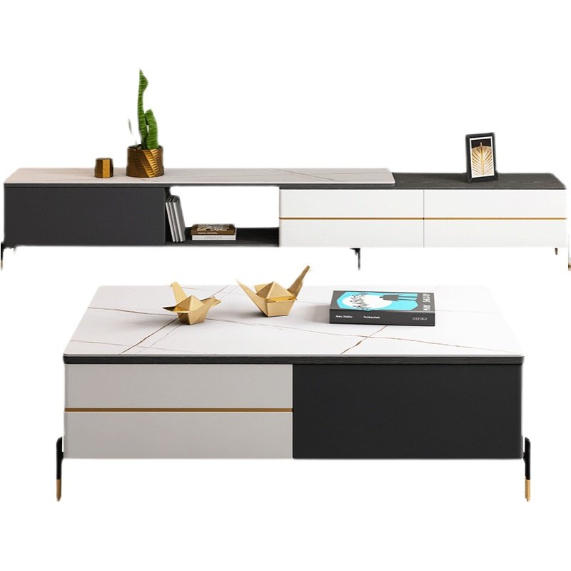 (Laurent Platinum Slab) 1.3m Coffee Table (Laurent Platinum Slab) Single TV Cabinet (Laurent Platinum Slab) Coffee Table + TV Cabinet