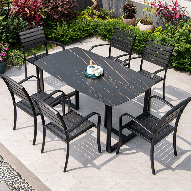 6 1 (flat armchair matched with 160CM detached Alisha grain rock plate long table) 4 1 (vertical stripe chair with 80CM Alisher grain rock plate square table) 4 1 (Buck chair fit 1