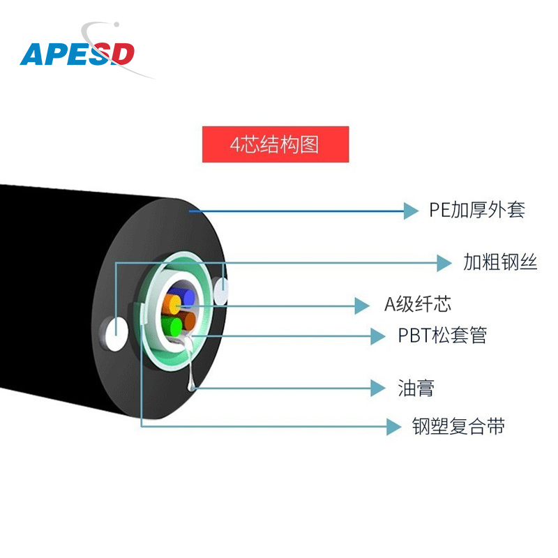 APESD Outdoor Single Mode 10,000 trillion sheathed optical cable GYXTW4 6 8 core overhead direct buried central beam tubular optical fiber