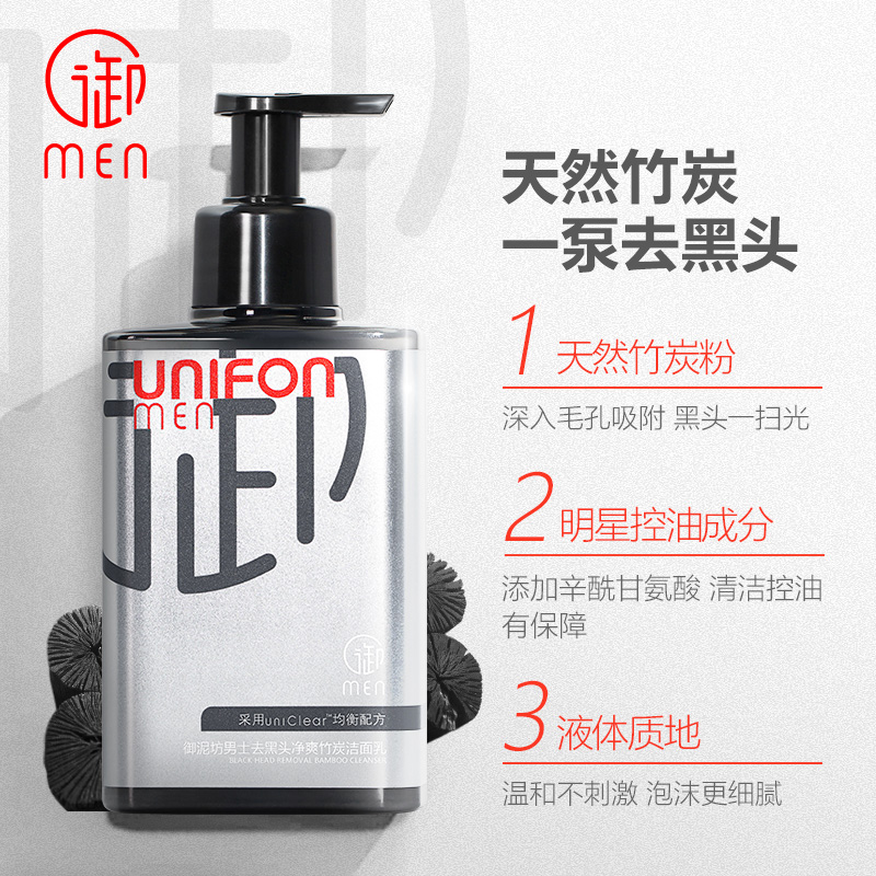Yunifang Men's Royal MEN Bamboo Charcoal Facial Wash Lotion Black Tea Blackhead Cleansing Milk Cleansing Oil Control Acne Pore