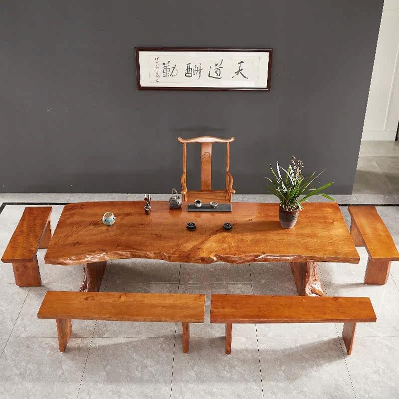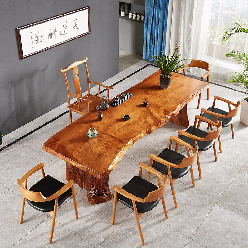 New Chinese style solid wood large board tea table and chair combination Kung Fu tea table Zen tea table modern minimalist antique tea table