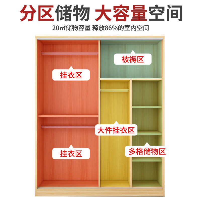 Wardrobe sliding door home bedroom solid wood panel simple storage cabinet economical storage cabinet wardrobe rental room