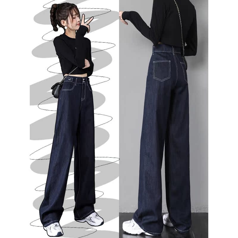 Straight Drum Jeans Woman 2021 Fall high waist loose Fat mm Conspicuously Slim dark blue broadlegged Long pants