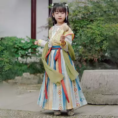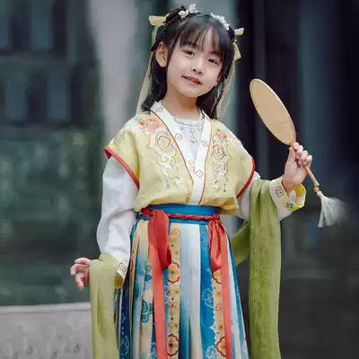 Wu Jianlian and girls Hanfu autumn children Tang Yizi half-arm cross-collar waist skirt Chinese style super fairy Autumn