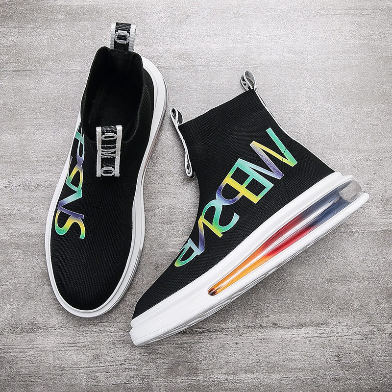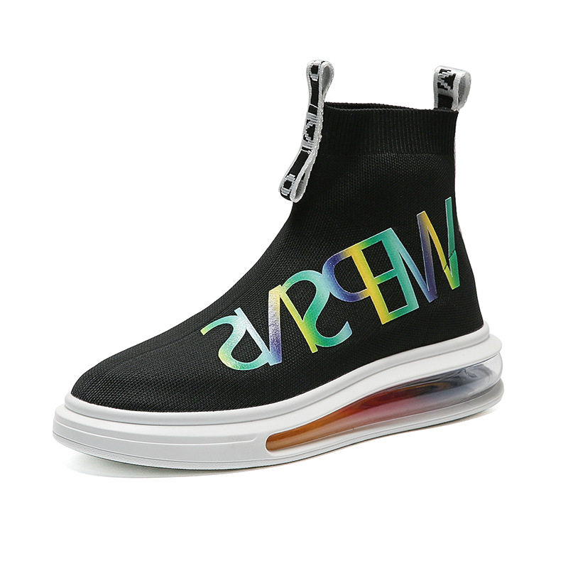 Male Shoes White High Cylinder Socks Shoes European Station Superfire Spring Burst Flood Shoes Thick Bottom One Foot Pedal Plate Shoes Little White Shoes