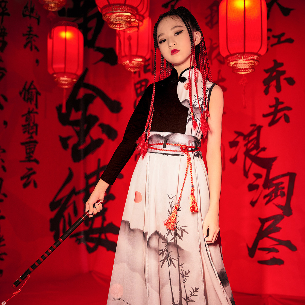 Children's National Tide Show Model T Taiwan Fashion Girls Ink Performance to Young Children's Chinese Dance Clothes