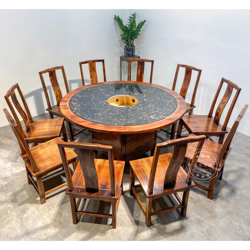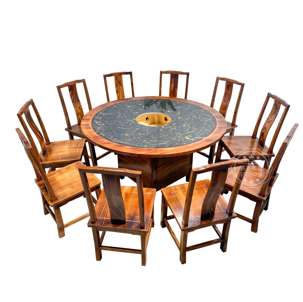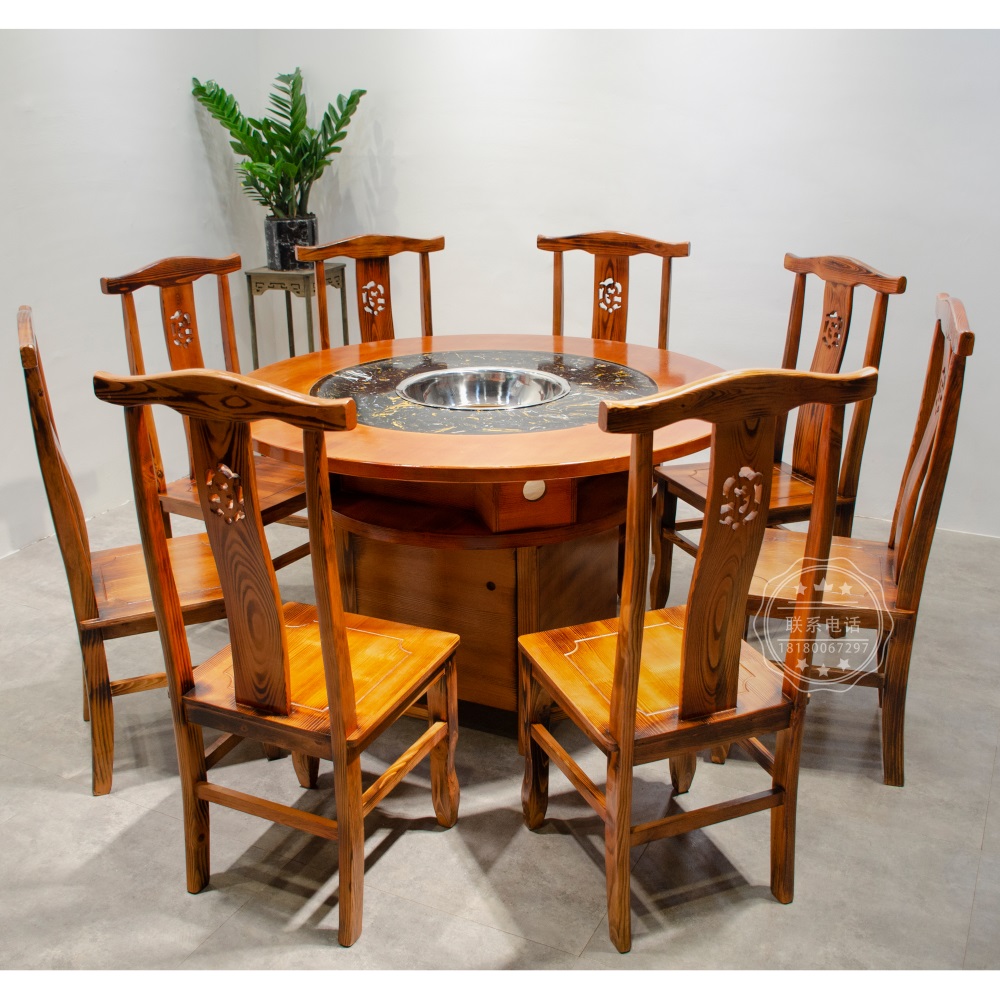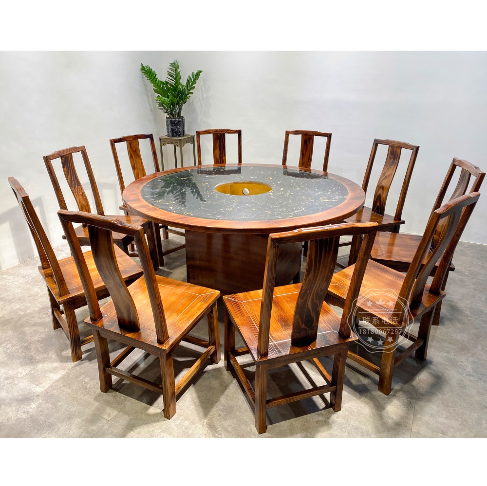 Round Table Marble Fire Burning Wood Hotpot Chairs Combined Smoke-pan Shop Restaurant Casual Farm Stew for Commercial Home
