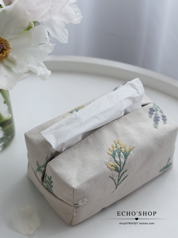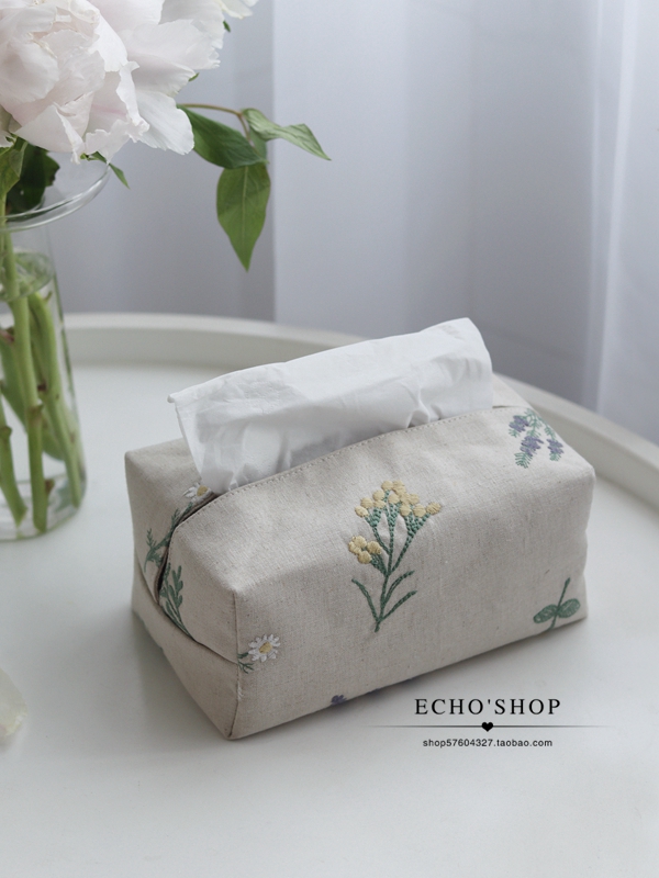 Small fresh cotton cloth toilet box Nordic embroidered flower tissue tissue pack Living room dining room paper towel bag