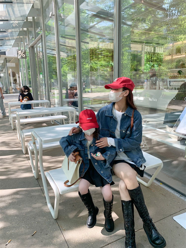 Fried street parent-child clothing 2022 spring and autumn new family of three mother and daughter clothing mother and child foreign style denim jacket family clothing trend