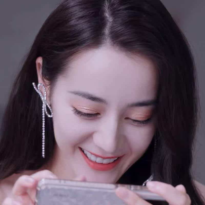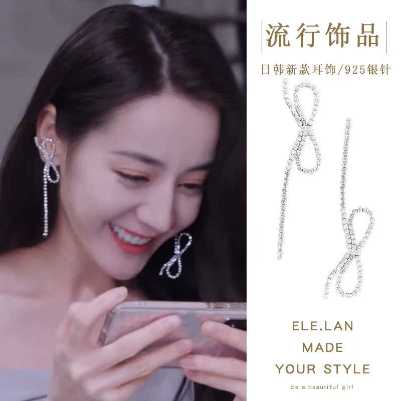 You are my glory Qiao Jingjing asymmetric bow earrings long version rhinestones Dilireba design earrings