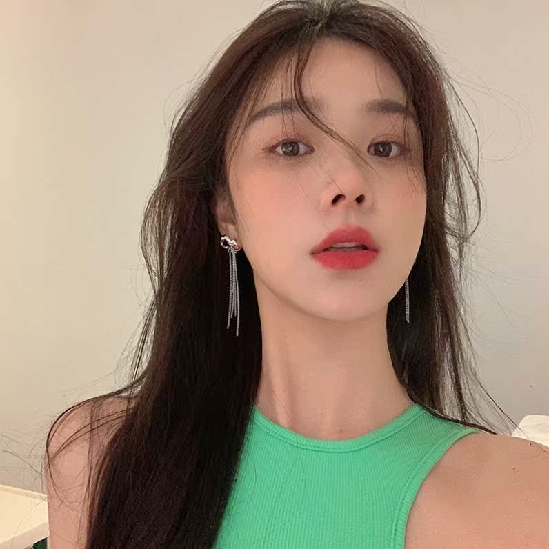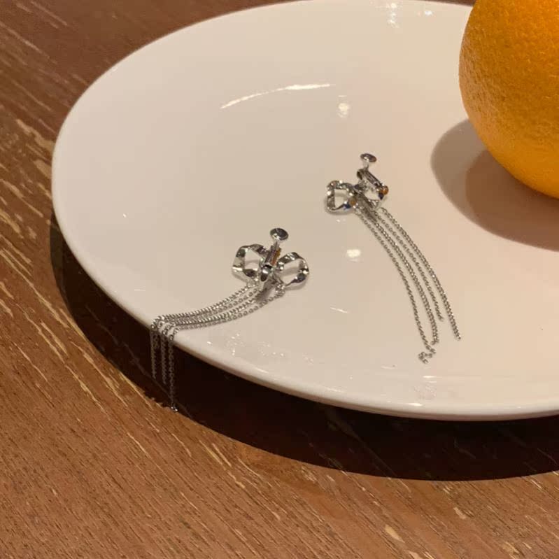 Yang Chaoyue same style bow earrings 2021 new trendy temperament tassel long version earrings female ear clip ear pin