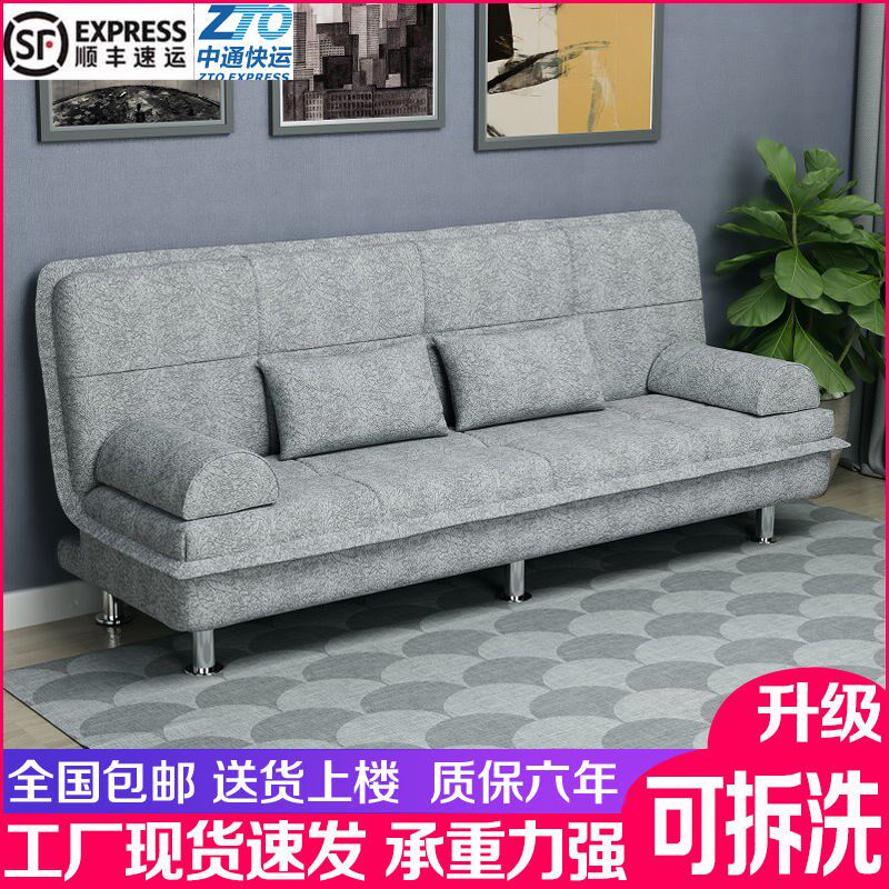 Multifunctional folding sofa bed dual-purpose fabric sofa double three-person living room rental living room simple lazy sofa