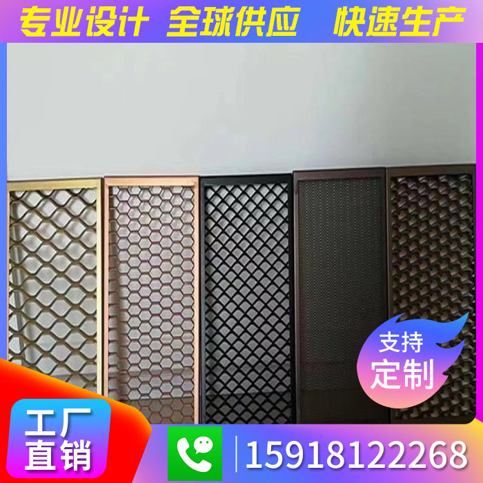 Custom Aluminum Mesh Mesh Diamond Small Hole Aluminum Mesh Door Head Walkway Stretch Mesh Board Black Screen Partition Wall Curtain Wall