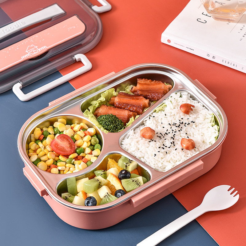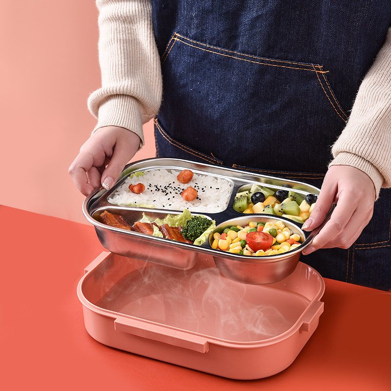 Student 304 stainless steel lunch box canteen to fight meal separation plate portable office workers with rice insulation lunch box