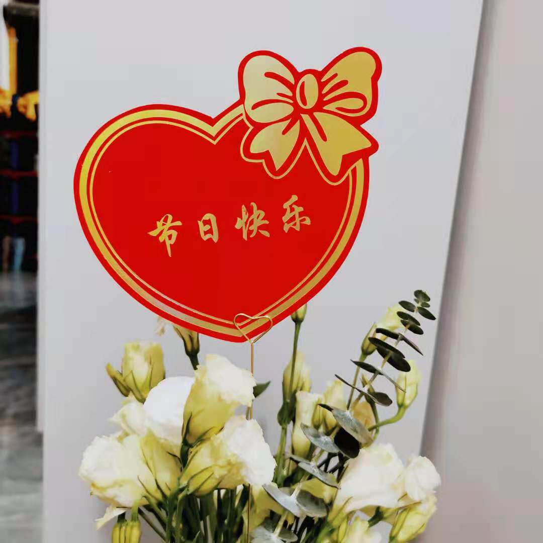 Heart-shaped red opening lucky peach heart blessing small card flower bouquet potted card flower basket holiday greeting card