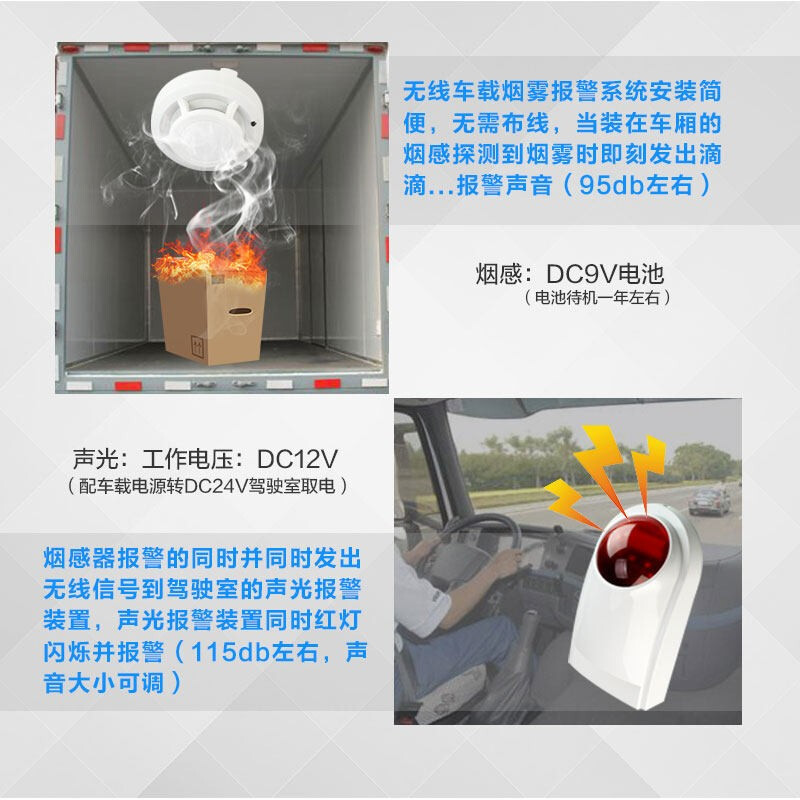 Vehicular Smoke siren Wireless 24v Car 9 6 m Van Smoke Sensing Fire Detector