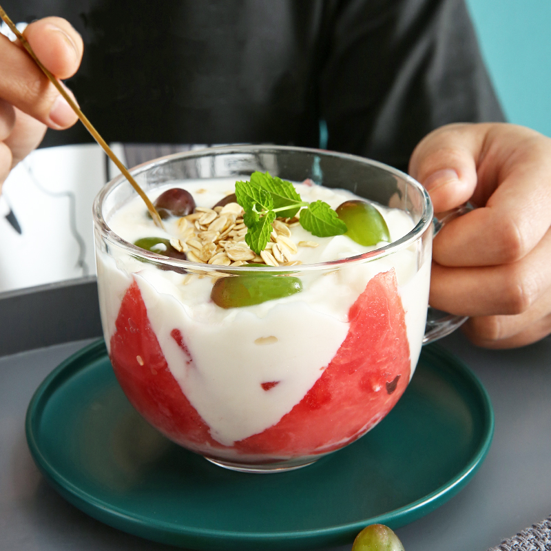 Transparent oatmeal glass glass glass female summer household large capacity cereal milk coffee cup with spoon