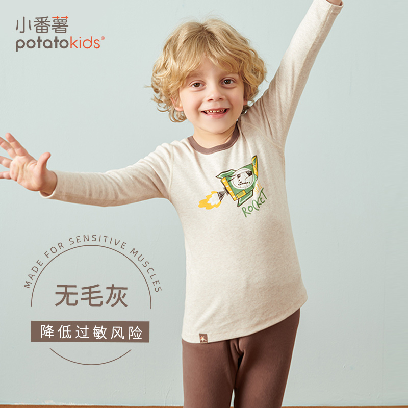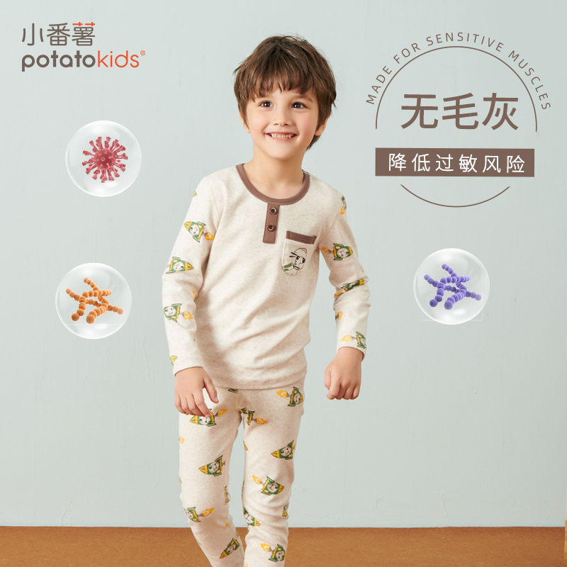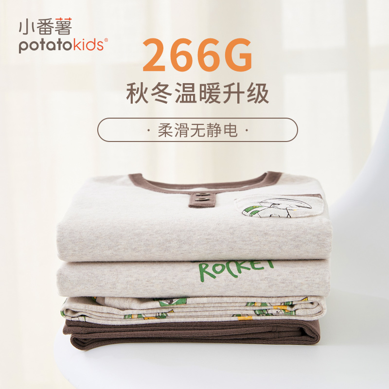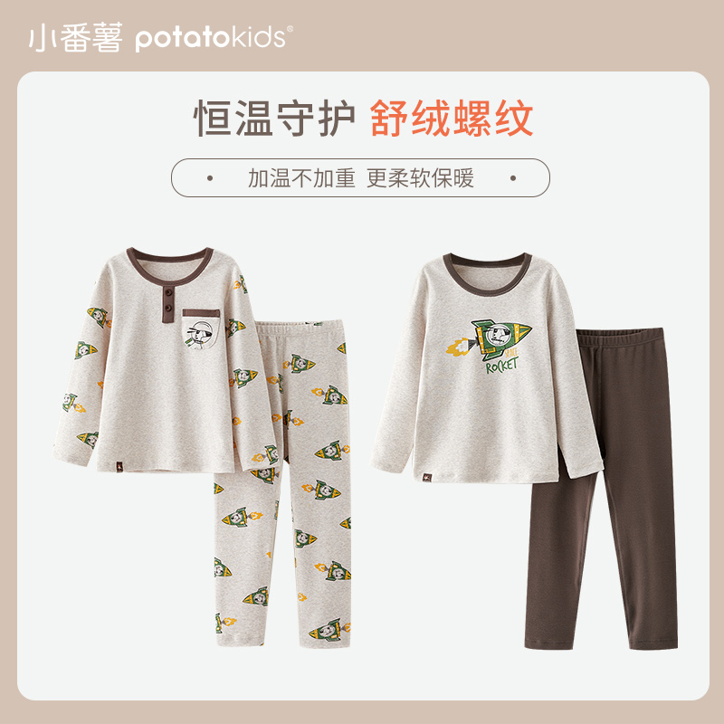 Little Sweet Potato Boys Cotton Brushed Ribbed Underwear Set 2022 Autumn and Winter New Medium-thick Children's Long Clothes and Long Trousers