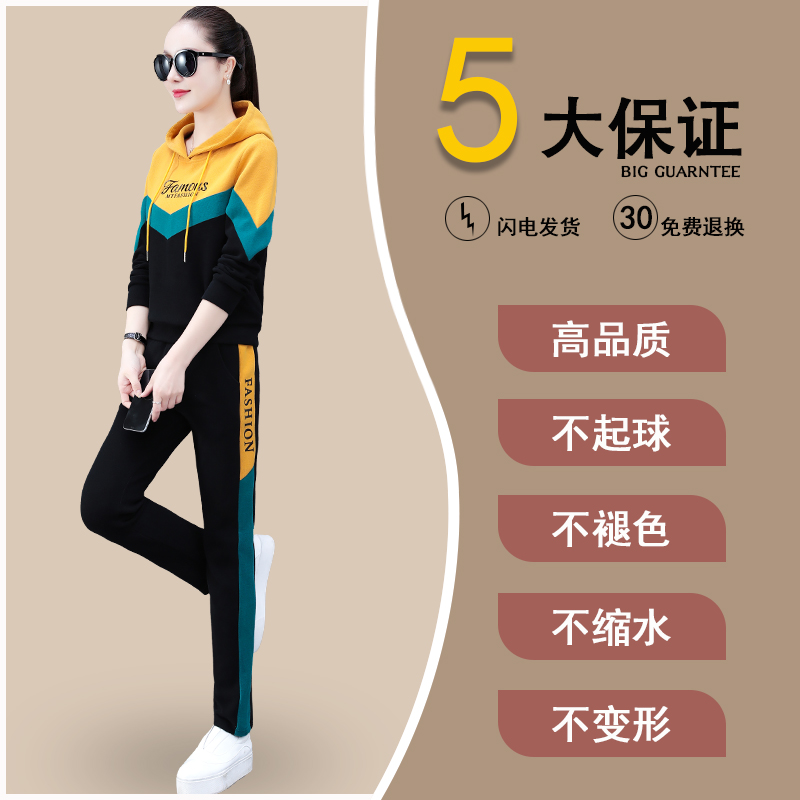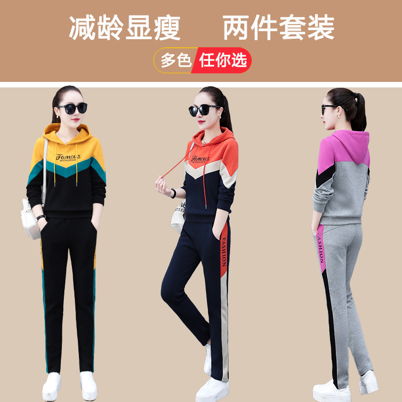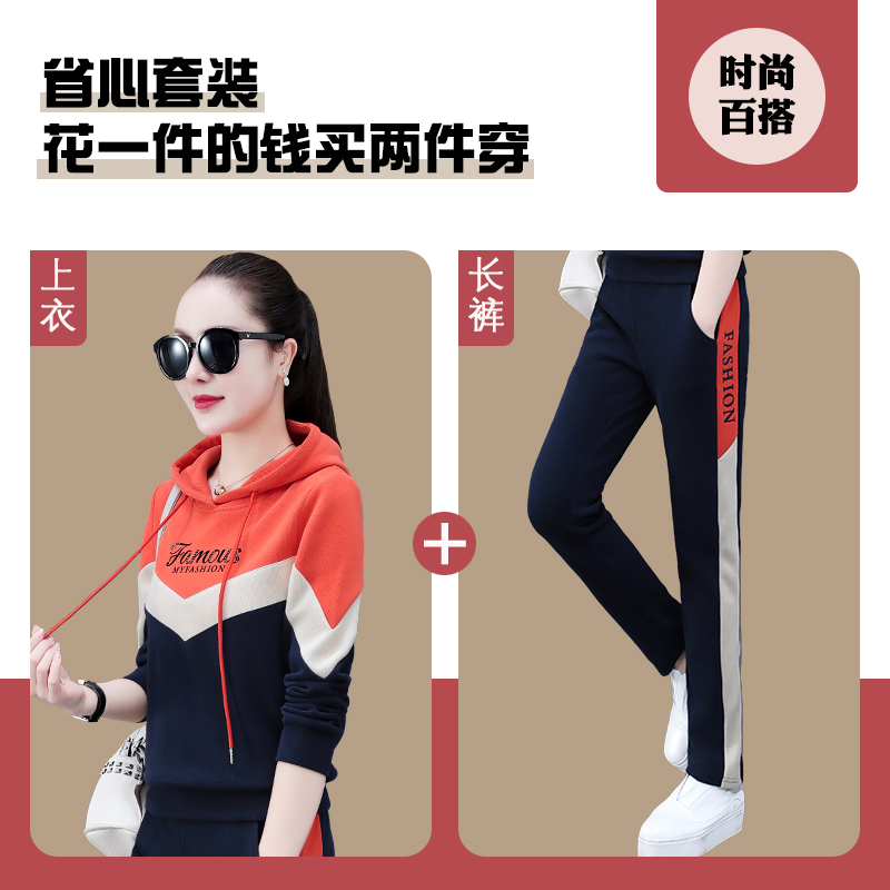 Sports Suit Women Spring Autumn 2022 New Foreign Pie Minus Age Middle Aged Casual Running Suit Small Subterwear Sweatpants Cotton