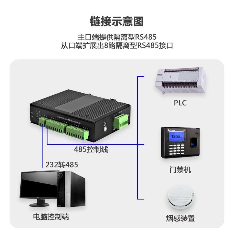 Wipda 485 hub 8-way repeaters extension cord 485hub signal isolators 1 minute 8 verbal industrial grade lightning protection 485 hub shareware communication module