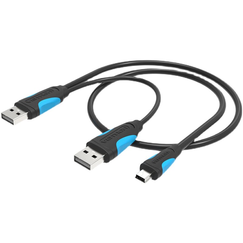 mini usb data cable double head with power supply T-port portable hard disk cable mini usb booster charging cable