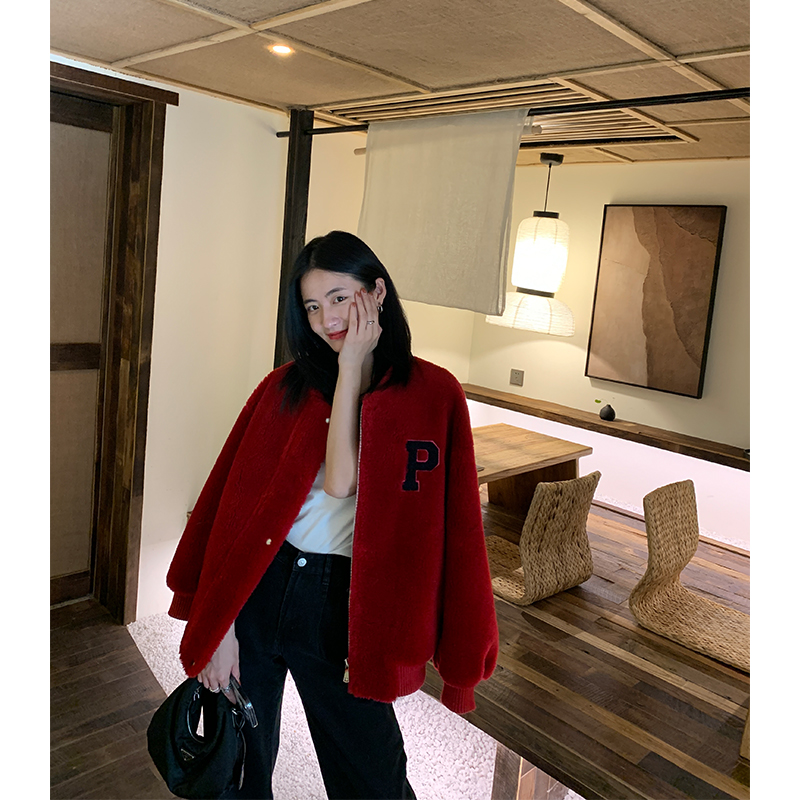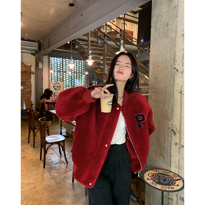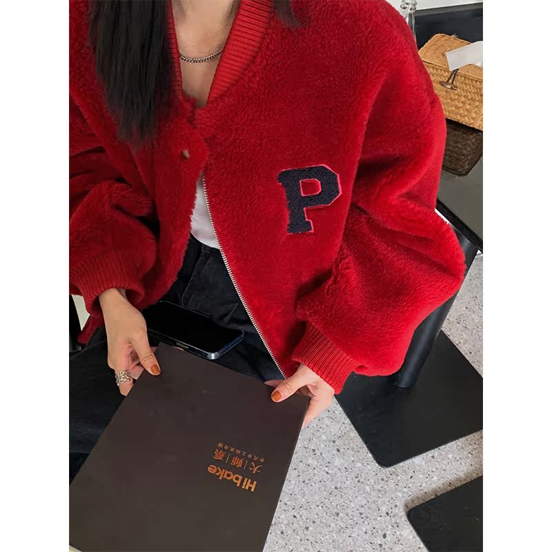 CC fur "baseball school girl" new imported sheep shearling coat lamb wool autumn and winter coat female young model