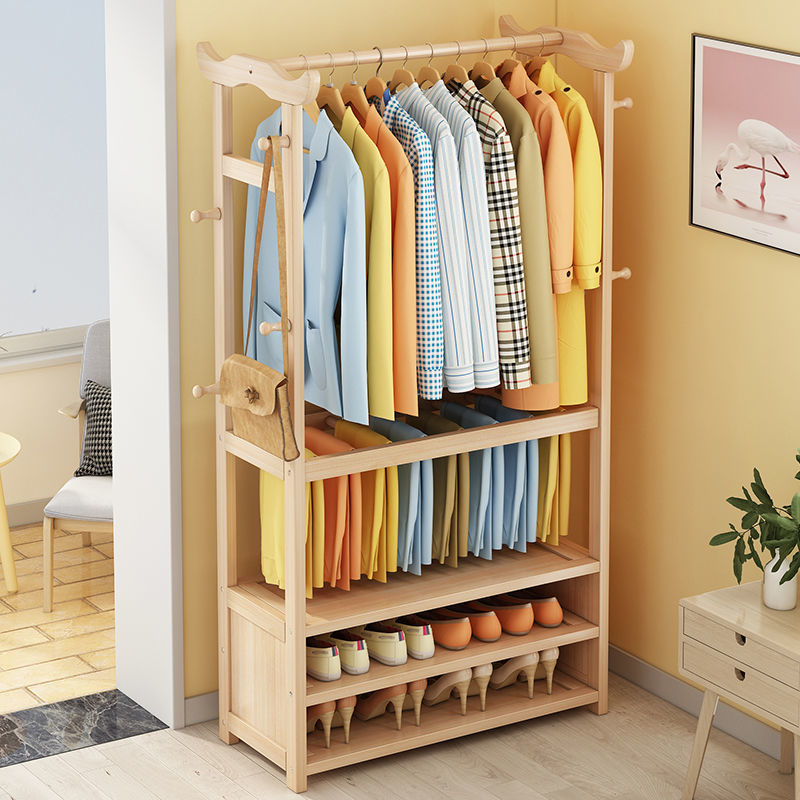 Solid wood coat rack floor-to-ceiling bedroom all-in-one clothes hanger home hanger indoor room trouser rack dormitory