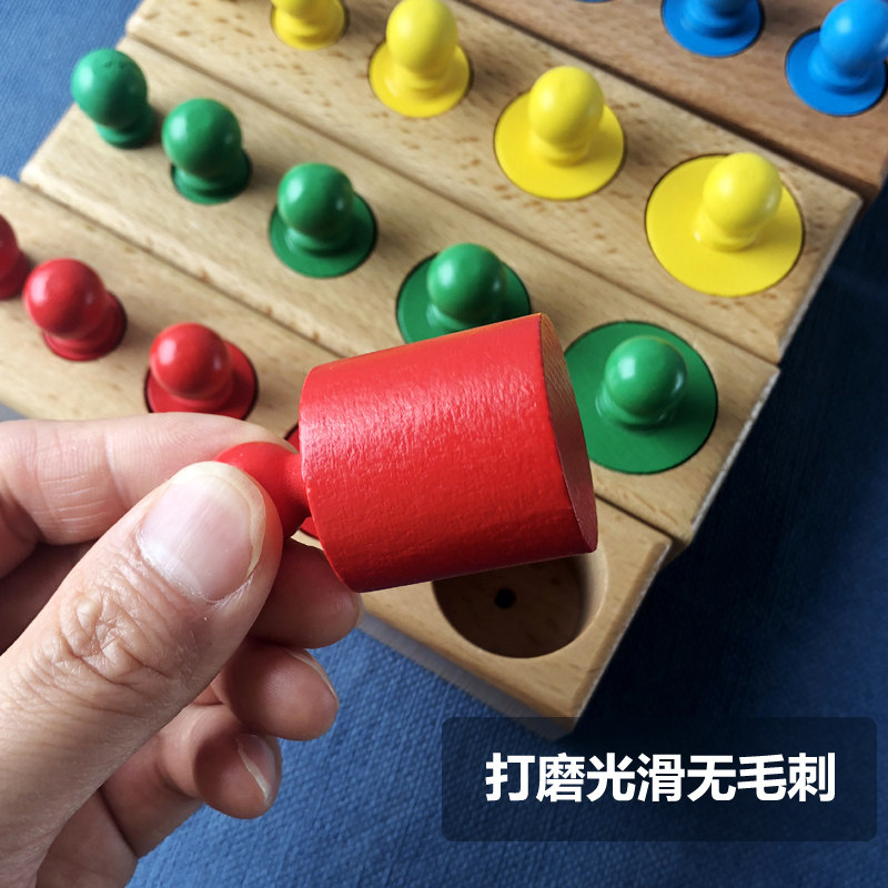 Montessori teaching aids with socket cylinder baby toy pure wooden stick sensory unity kindergarten 1-3 years old radish pairing
