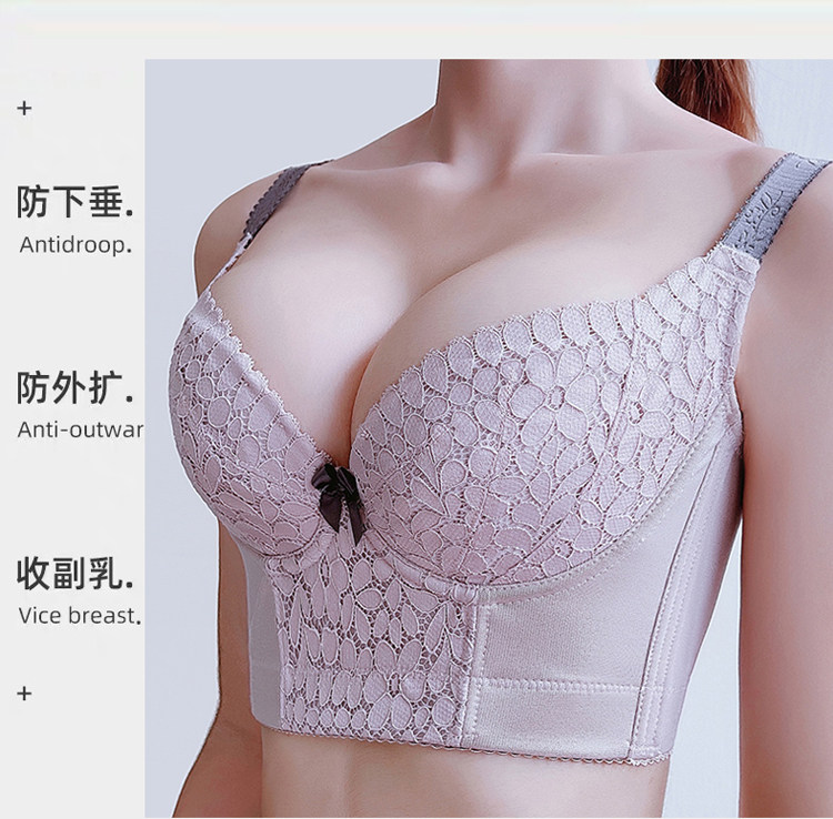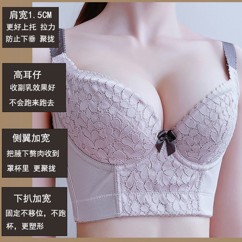 Summer adjustment type close-up breast thin section gathering correction outer expansion sagging upper support 6-row buckle beautiful back bra bra underwear women
