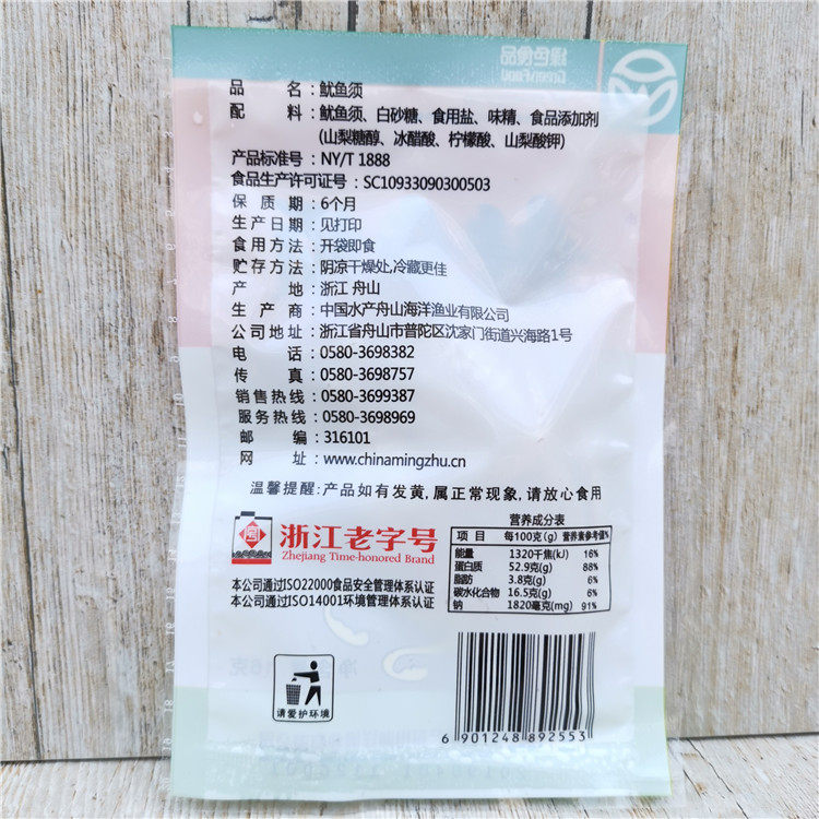 squid silk white sugar edible salt etc.