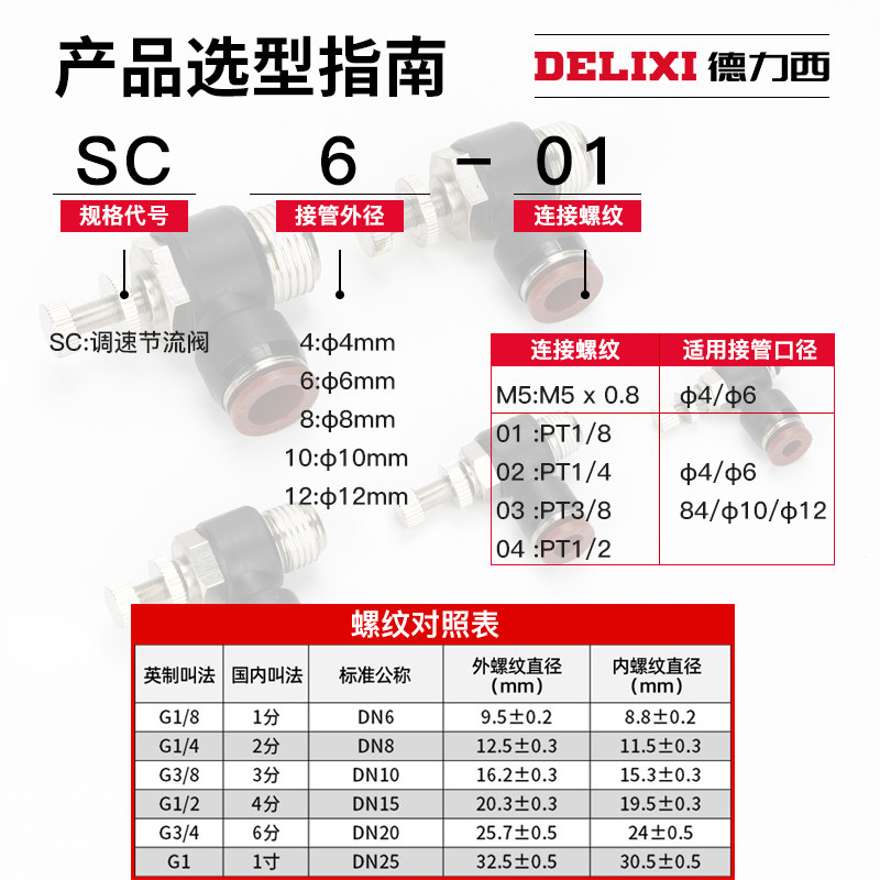 Delixi speed control valve fast joint SC throttle valve quick plug SL4-M5 6-01 8-02 10-03 12-04