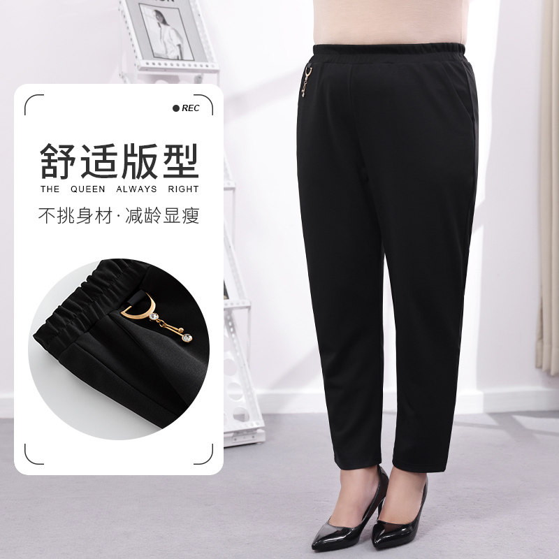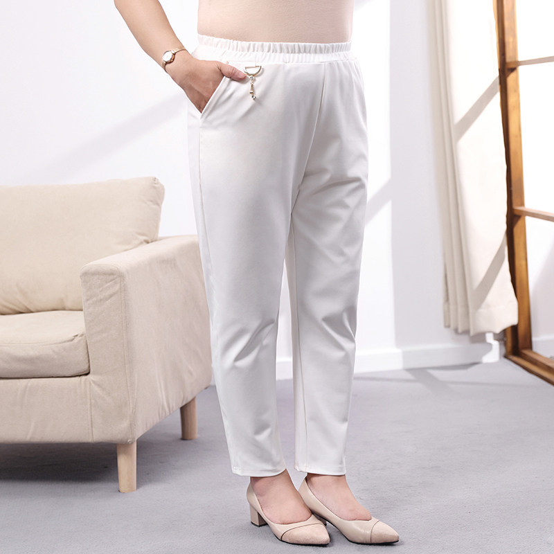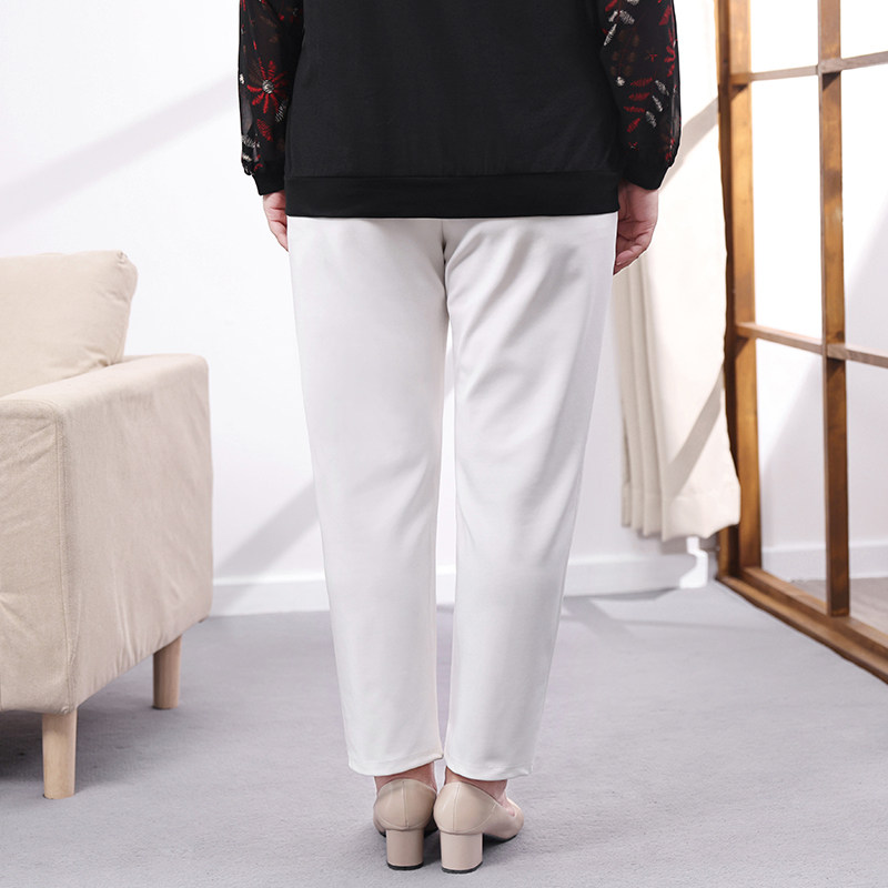 Middle-aged and elderly women's pants autumn and winter temperament all-match mother's trousers loose plus fat big size fat mother pants white