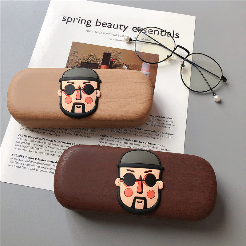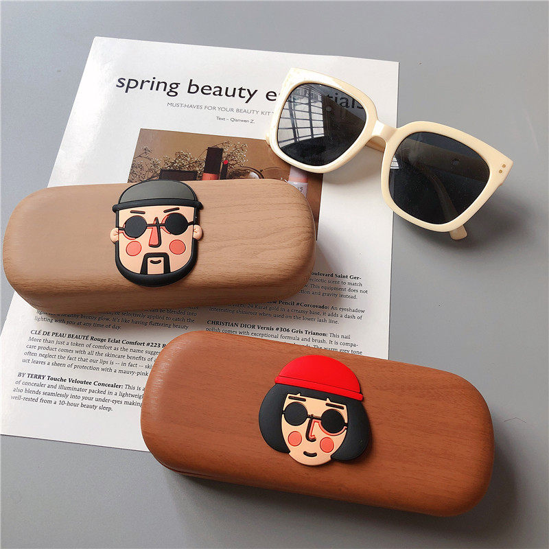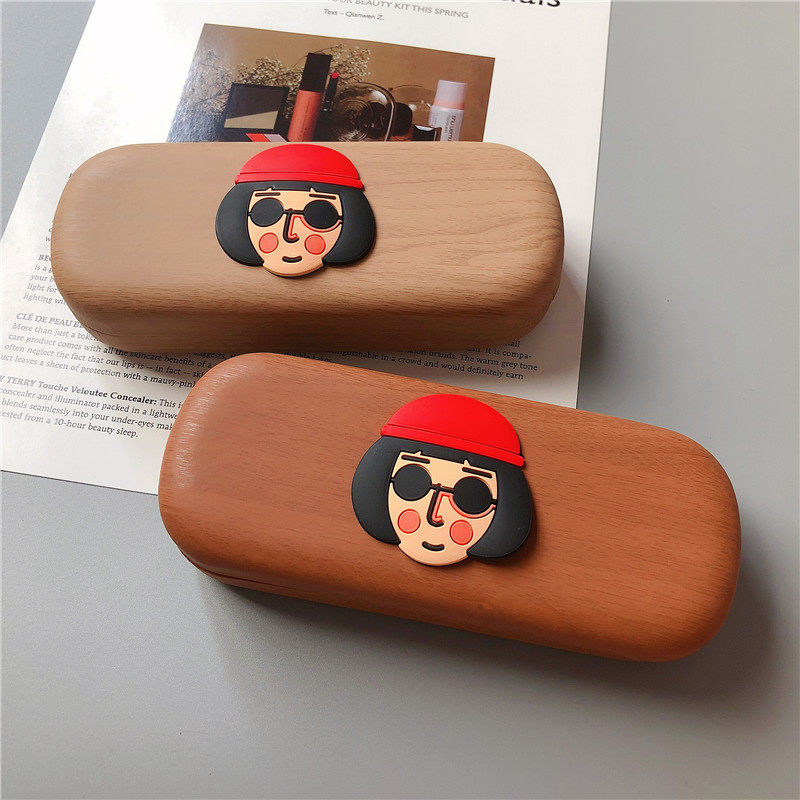 Retro wood grain frame myopia glasses box cartoon killer not too cold series ins simple portable storage box