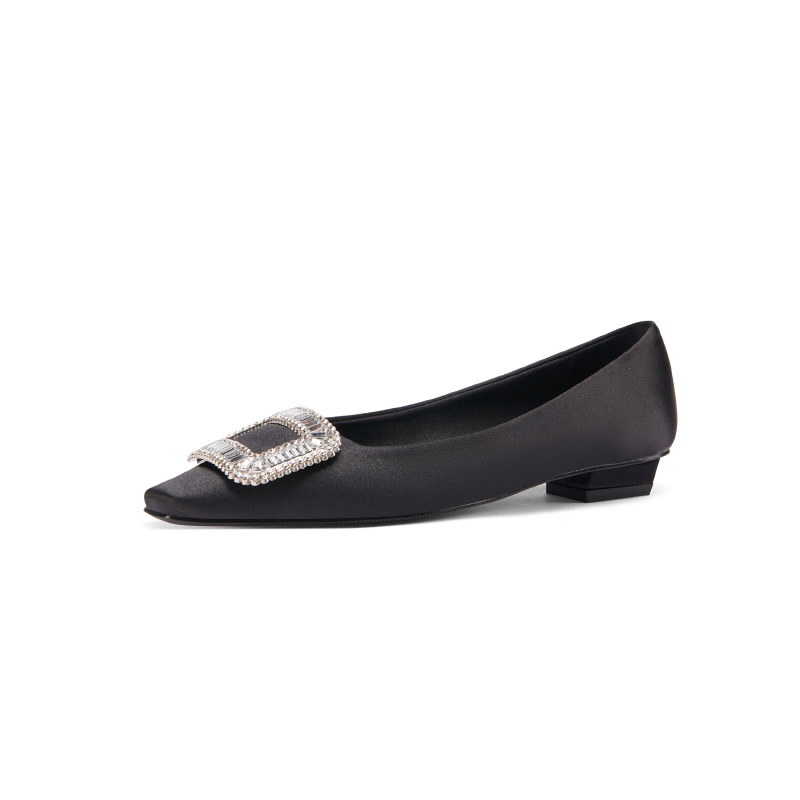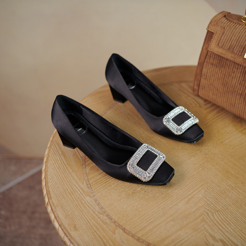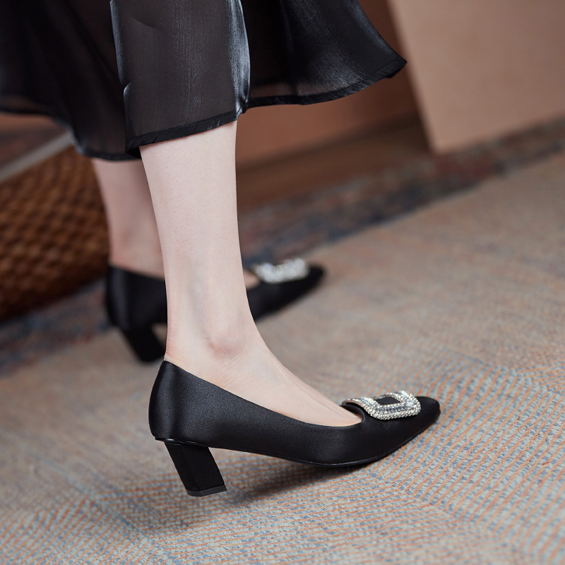 Black Single Shoe Woman 2022 New Spring Autumn Season Flat Bottom Shoes Heel Rough Heel Heels Heel Heels High Heel Heels
