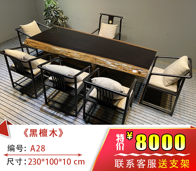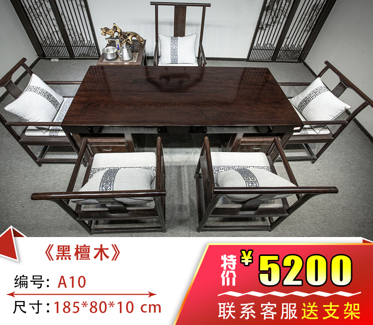 Ebony new Chinese-style solid wood large board log tea table tea board tea table dining table boss desk whole desktop mahogany