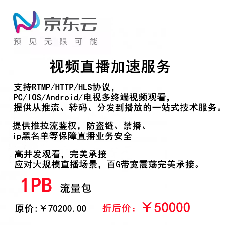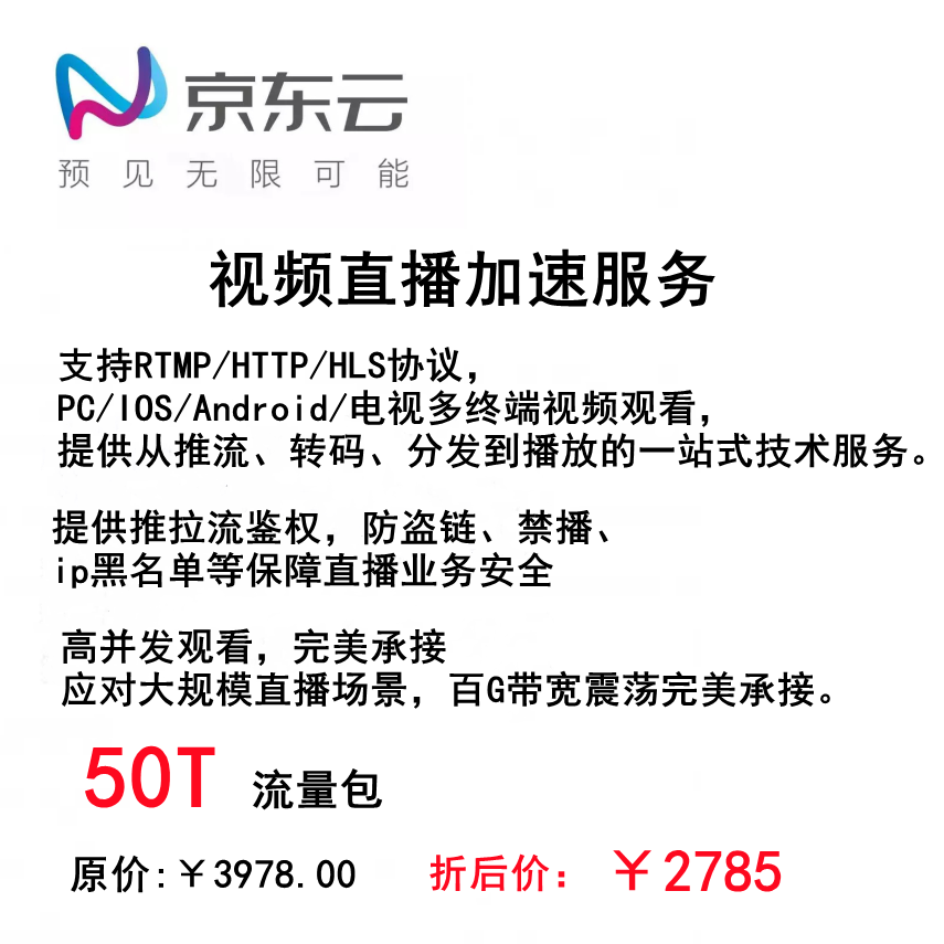 Jingdong cloud video cloud live streaming push-pull streaming RTMP HTTP HLS real-time transcoding live recording screenshots anti-theft