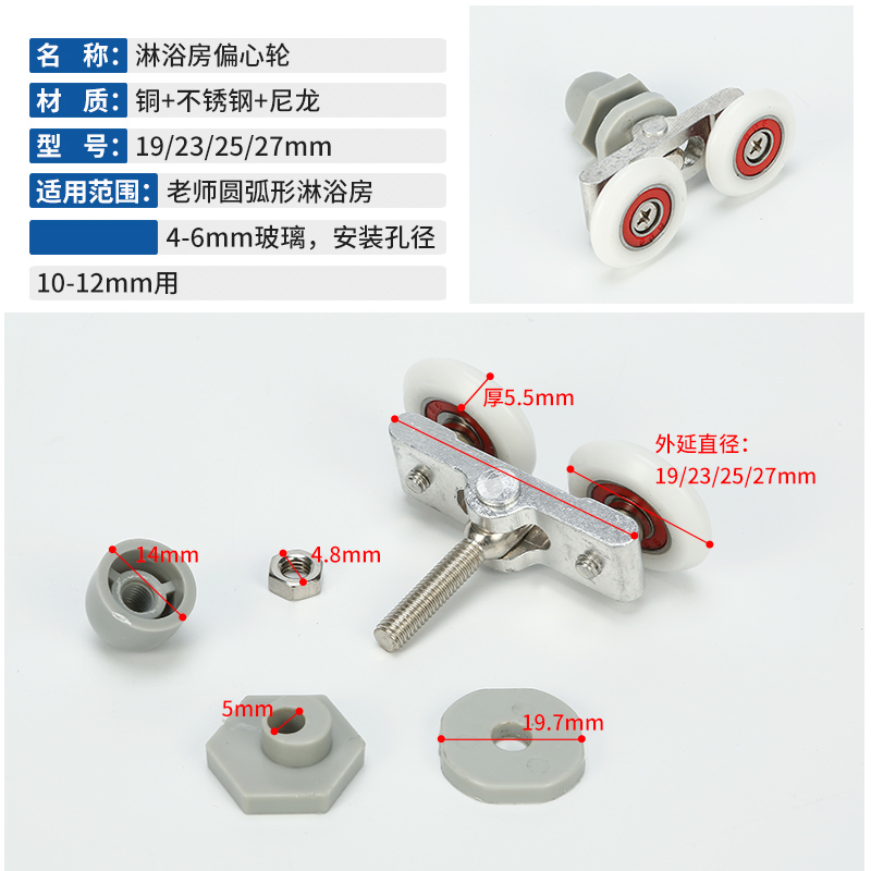 shower room mobile door pulley bathroom door double wheel circular glass door hanging slide five gold accessories full set of make-up room rollers