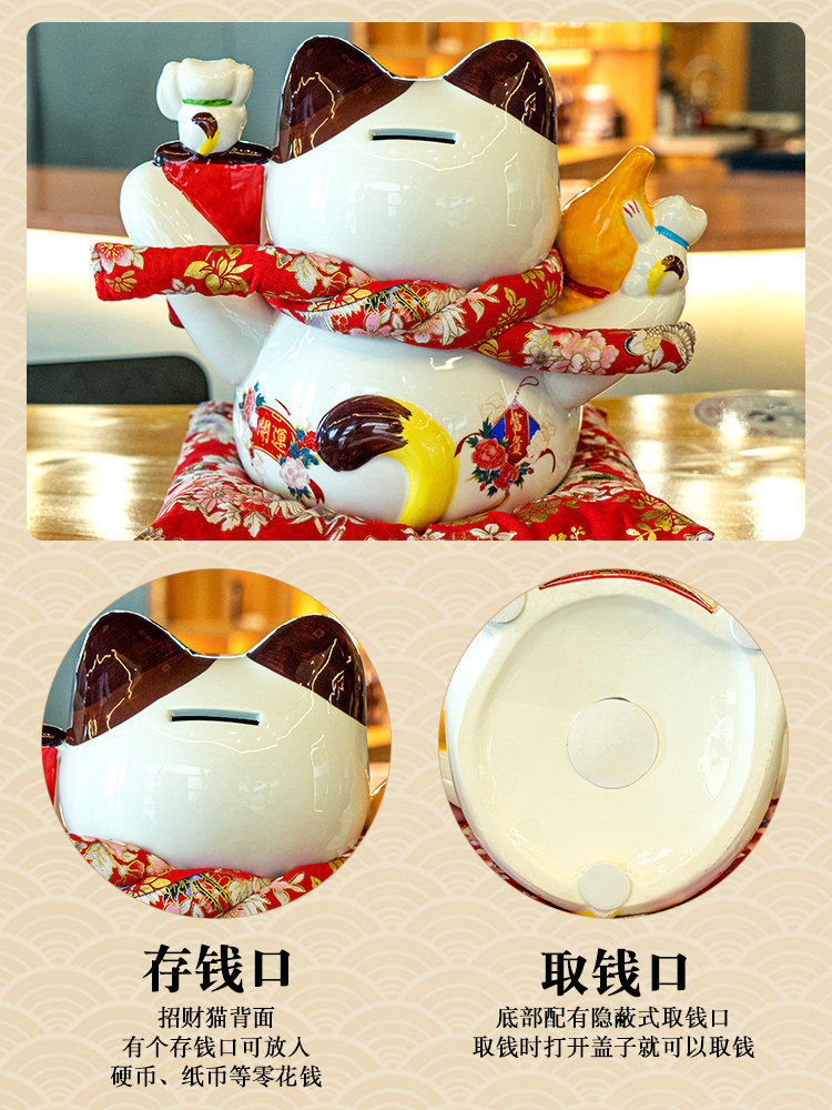 Extra large Lucky Cat Ornament Opening Congratulation Gift Piggy Bank Store Front Office Home Living Room Fortune Cat