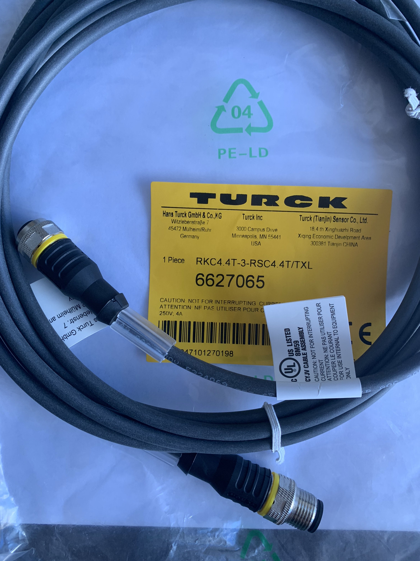 Brand new original TURCK plug-in cable RKC4 4T-3-RSC4 4T TXL two-end M12 male and female plug