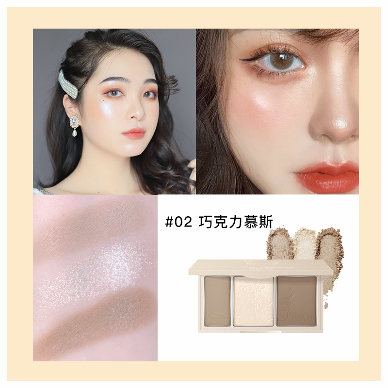 novo three-color high-gloss repairing disc glitter face fine-shine brightening matte dual-use shadow nose shadow three-in-one disc