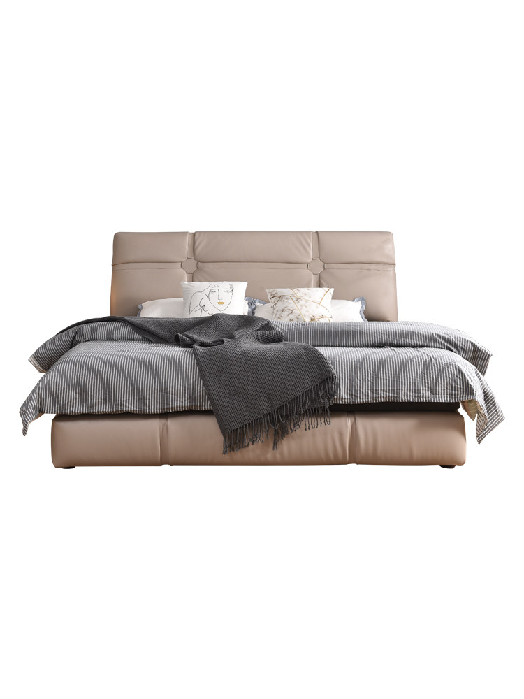 Modern minimalist style soft package double leather bed bedroom small apartment floor model 18 meters master bedroom marriage bed beige home