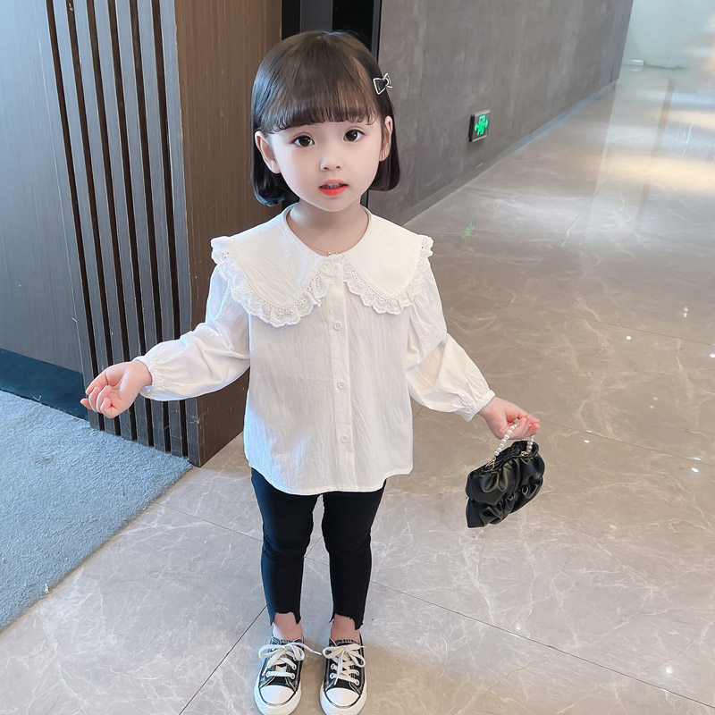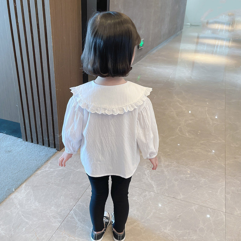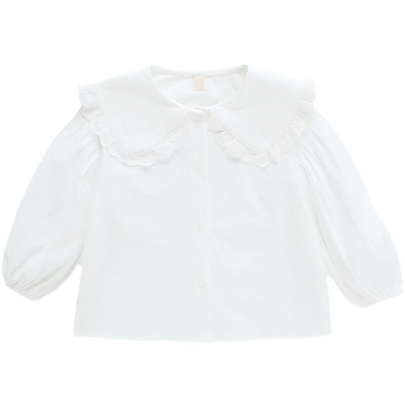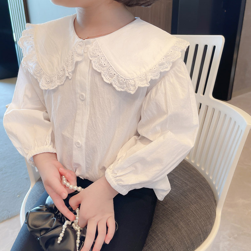 Girls' Shirts Spring and Autumn Children's White Doll Collar Long Sleeve Shirts Little Girls Girls Treasure Shirts Baby Lapel Doll Shirts