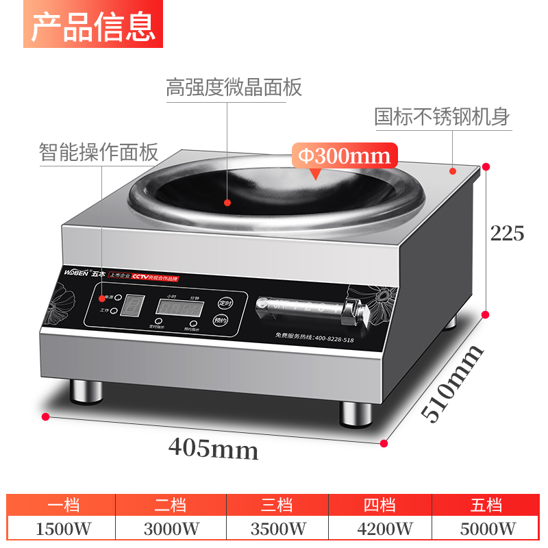 Five commercial induction cookers 5000W High power commercial electric stove table concave surface induction stove hearth 5kw