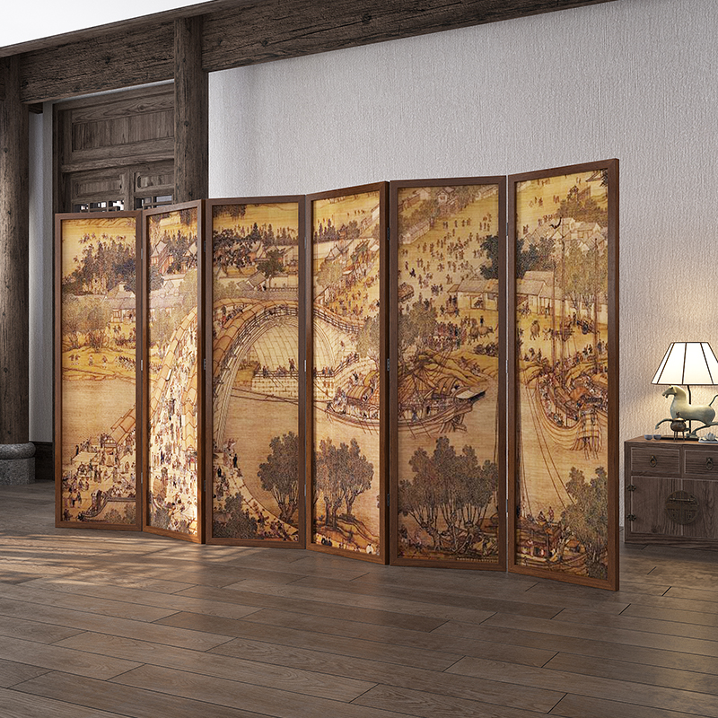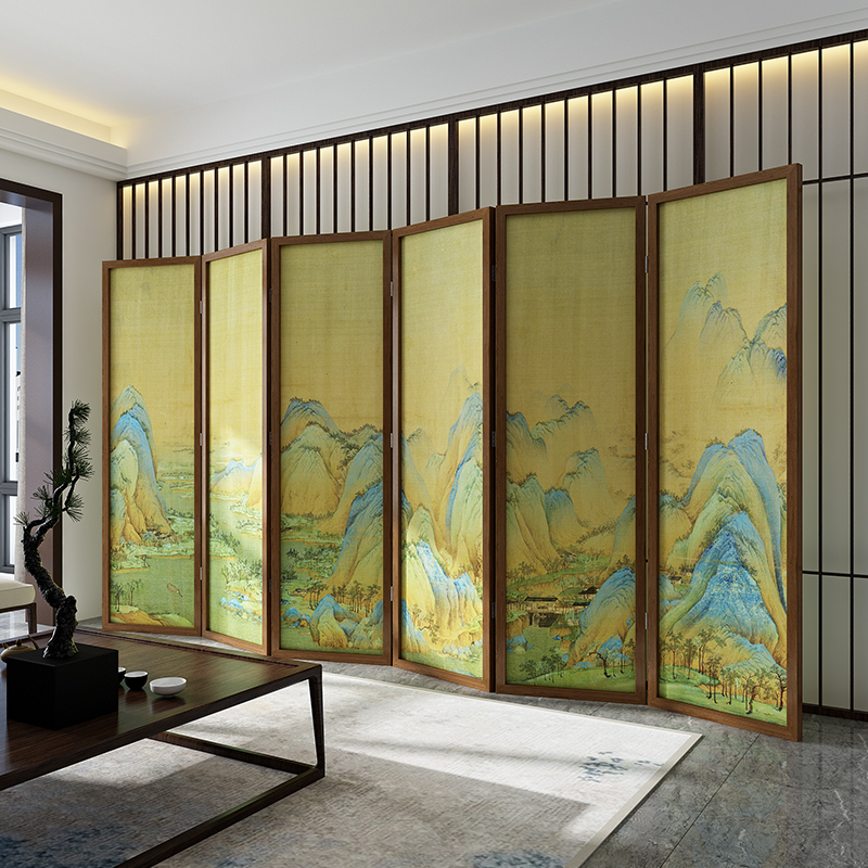 Screen partition Living room Chinese style office Hotel solid wood Qianli Mountain map Name Painted Classical Screen Folding Movement