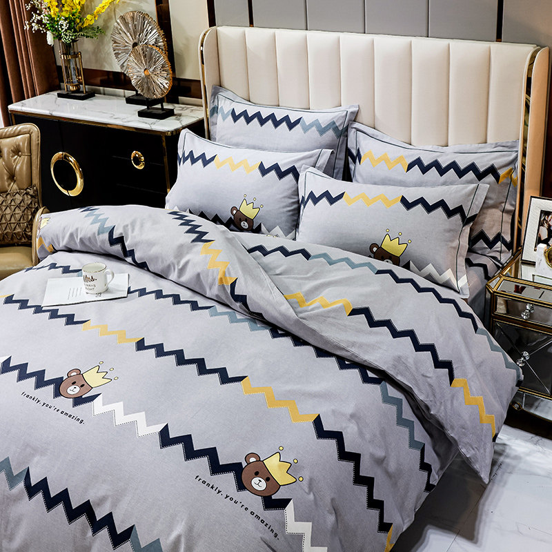 Nordic Wind Bed Bedding Mill Wool Four Pieces Of Pure Cotton Children Grey 1 8m Bed Boy Quilt Cover Bed Linen 4 pieces