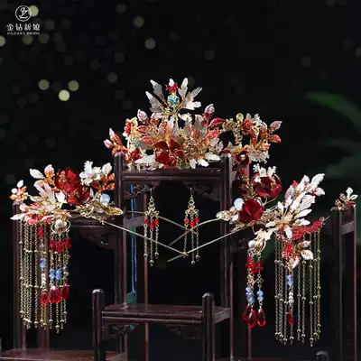 Xiuhe headdress 2021 new ETE te red tassels simple Chinese atmosphere phoenix crown Xiuhe clothing accessories women