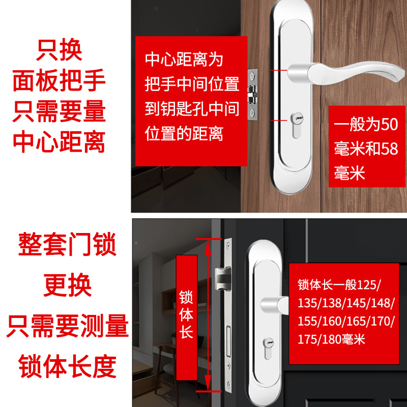 Door lock household universal indoor silent without changing holes adjustable wooden door lock room door lock bedroom door lock handle