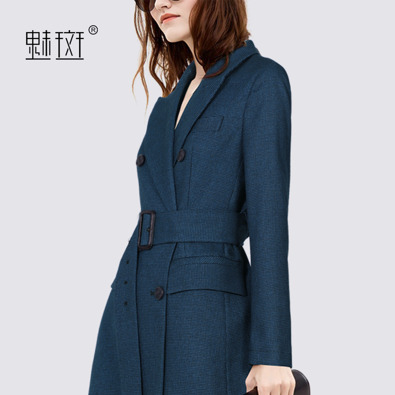 The Phantom European and American double-row buckle in the long version Western suit 2022 spring fit new body to collect waist and pendant texture suit jacket