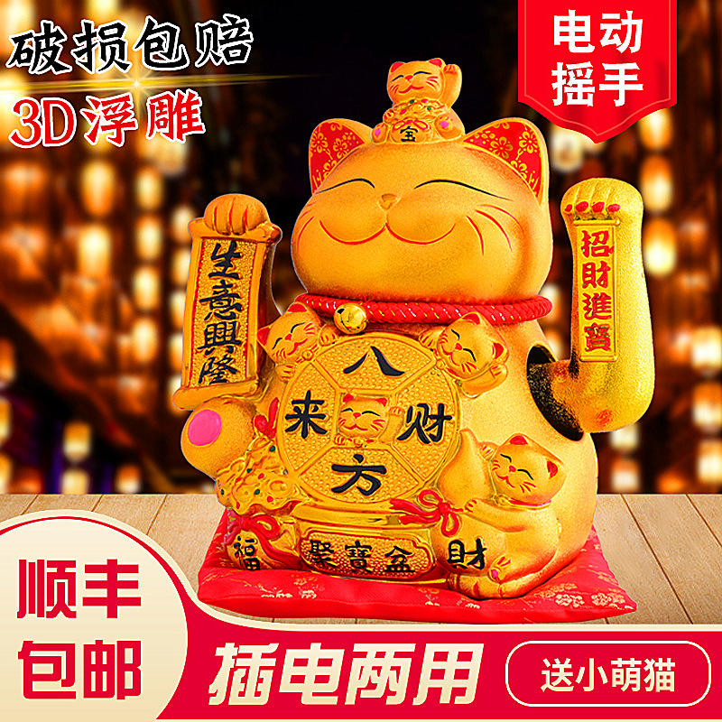 10-inch gold cat 8 Fang to chater (battery plug-in dual-use) not to send cute kitten 10 inch gold cat shake hands (battery plug-in dual-use) not to send cute kitten 12 inch gold cat big copper money business Xinglong