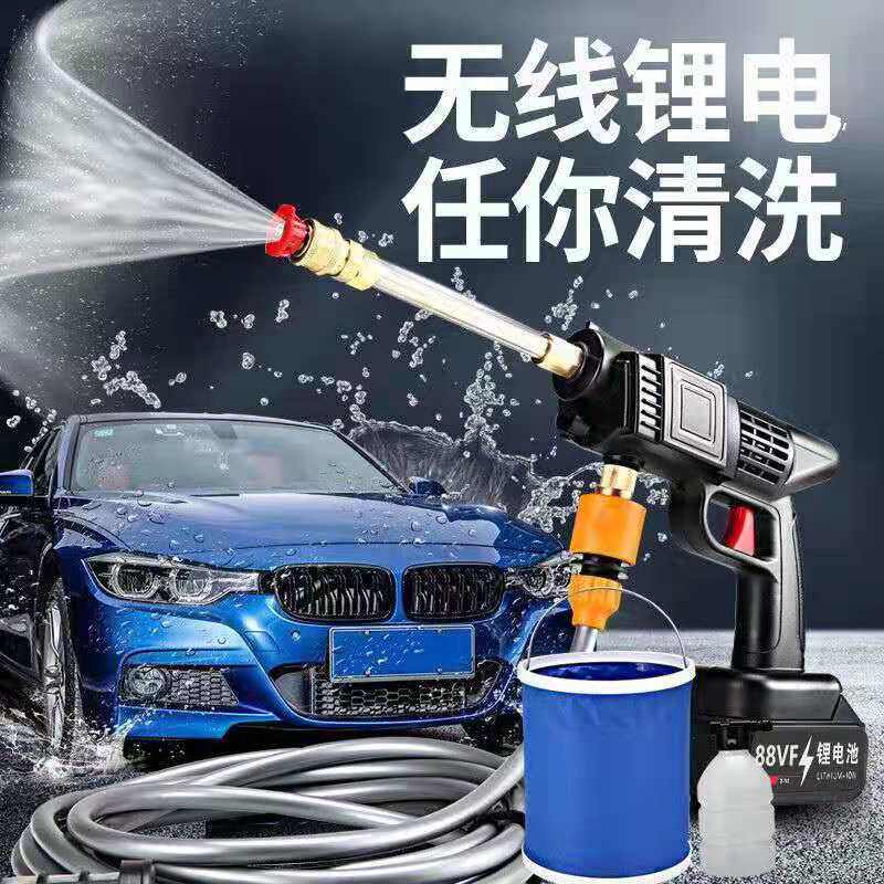 Wireless car washing machine artifact high-pressure water gun household portable rechargeable with lithium battery 48v88v washing machine tool